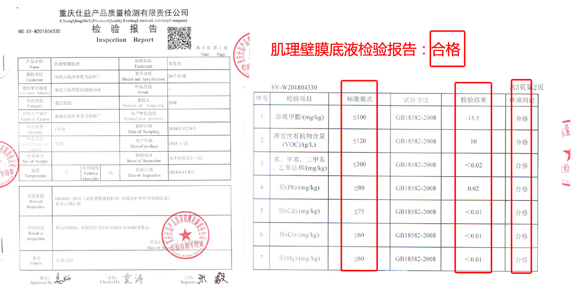 多美力肌理壁膜主料檢測報告